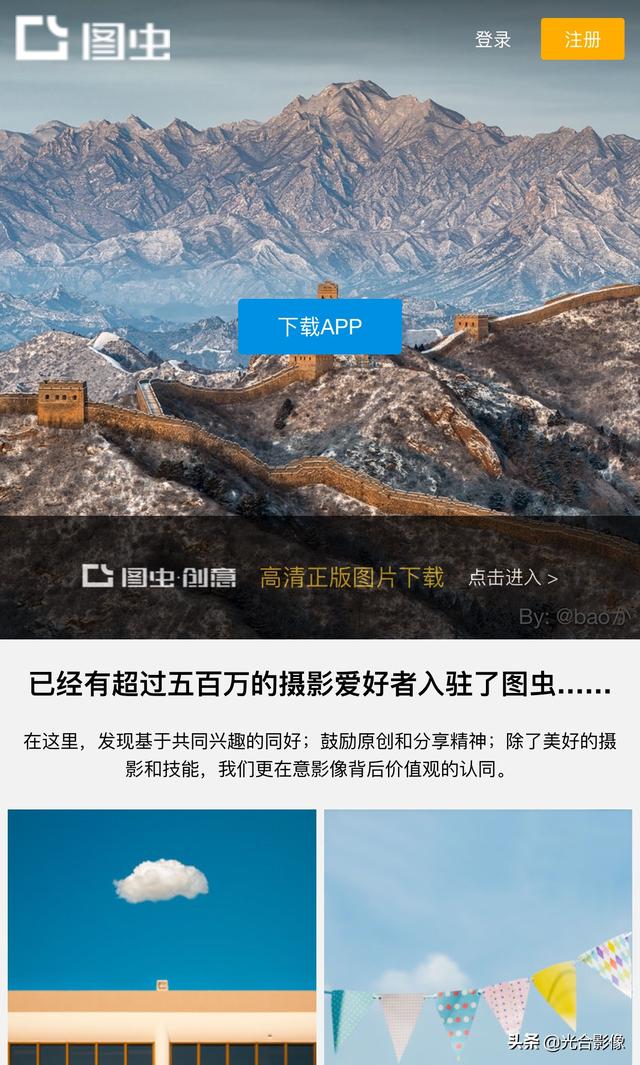 它的宣传标语是:“最好的摄影师都在这”,多年前,图虫靠着与摄影论坛不一样的玩法拉来了很多优秀的摄影师,但最近用户也在慢慢流失,不过小清新、风光、私房等题材里面还是有不少的优秀作品。