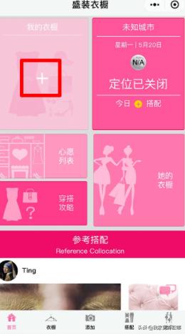 5、可以提前搭配多天的衣服,点击“搭配”,选择日期,点击“+”。